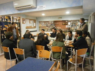 Ao final da manhã, fomos ainda recebidos pelo Presidente da direcção do Clube Atlético das Patameiras e restante equipa. Este clube desenvolve variadíssimas modalidades tais como o Atletismo, a ginástica de manutenção, o futsal e o taikwondo, sem esquecer a realização dos tão famosos Santos Populares. Contam actualmente com 250 atletas sendo as quotas apenas de 1€ por mês. A sua sede, localizada no bairro das Patameiras, é sobretudo visitada por sócios, muitos deles desempregados e reformados, mas que é fulcral para o equilíbrio das contas do clube com a exploração do bar/café e salão de jogos. A direcção do CAP lamentou-nos não existir actualmente, uma política clara e concreta para o desporto escolar em Odivelas, ficando a Câmara Municipal muito aquém dos deveres que tem a este respeito. O CAP considerou ainda muito importante que os agentes políticos e autárquicos “percam” tempo na perspectiva de ouvir as pessoas, de perceber a realidade das forças vivas com o objectivo de haver uma maior proximidade sinérgica entre Associações e forças partidárias.