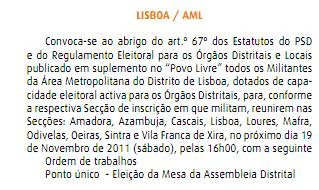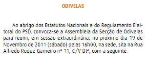 Informamos que, na sequência das eleições do passado sábado, para os órgãos da concelhia do PSD Odivelas e da regional de Lisboa, os resultados eleitorais foram os seguintes: